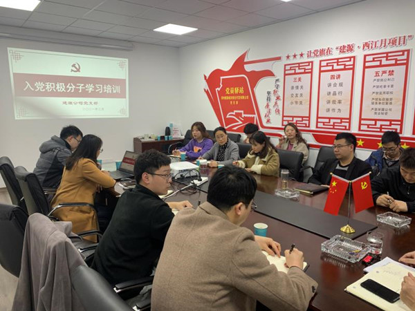 为切实做好发展党员工作,提高党员质量,建源公司党支部紧扣《中国共产党发展党员工作细则》相关规定和要求,于3月25日下午在建源·西江月项目党员驿站,组织建源和泽武公司13名入党积极分子和入党申请人集中学习。