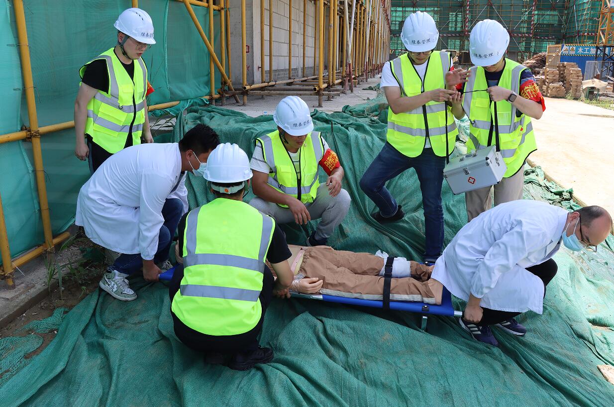 “王经理!我是安全员乔华,施工现场1-2#实验楼一层发生火灾,请求支援”“立即启动应急预案二级响应!”……6月28日下午,为积极响应全国第22个“安全生产月”活动号召,营造“人人讲安全、个个会应急”的浓厚氛围,经发集团在西园教育培训中心工程项目开展综合应急演练活动。