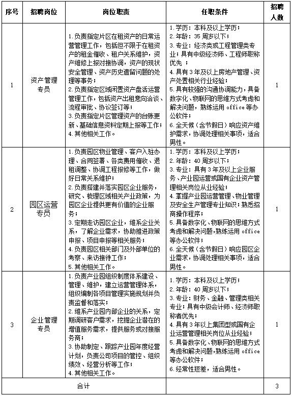 常州市武晋城市资源运营有限公司组建于2020年9月,为武进经发集团旗下专门从事城市资源运营管理的全资子公司,公司主要围绕区域内相关城市资产资源的挖掘、整合、盘活以提升资产资源的运营质量和效益。现因业务发展需求,拟面向社会公开招聘3名专业人员,招聘具体事项如下: