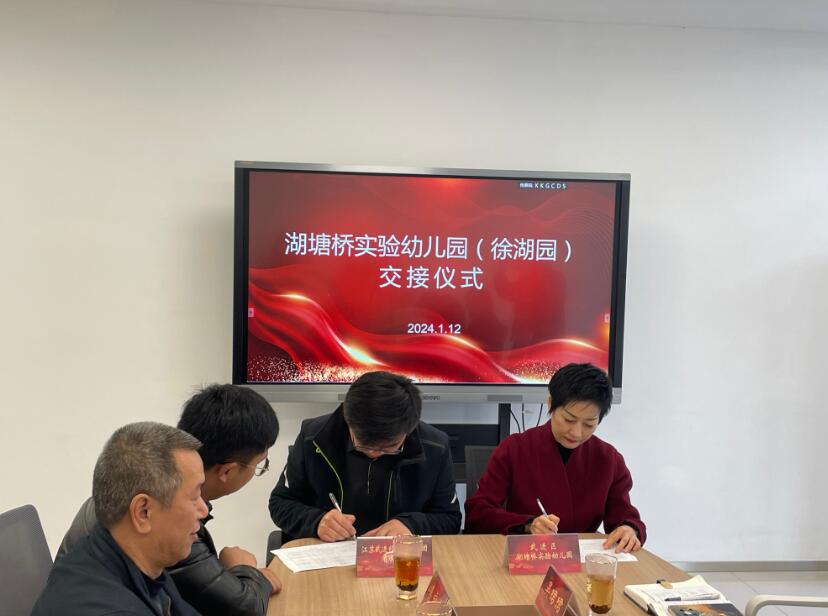 交接仪式上,与会人员共同见证了经发集团与湖塘桥实验幼儿园签署移交文件这一重要时刻。