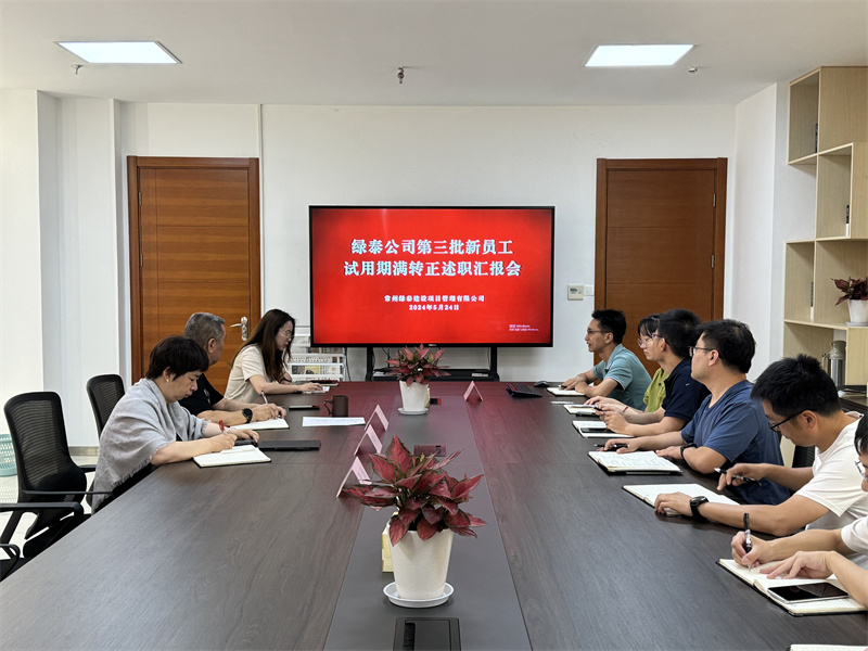 孟夏之日,万物并秀,绿泰公司迎来了第三批拟转正新员工。为更好规范公司用人管理制度,客观、公正评价新员工在试用期内的工作表现,持续性做好公司人才梯队建设,5月24日上午,绿泰公司组织开展第三批新员工转正述职汇报会。公司领导班子成员、各相关部门负责人及5位试用期满拟转正员工参加会议。