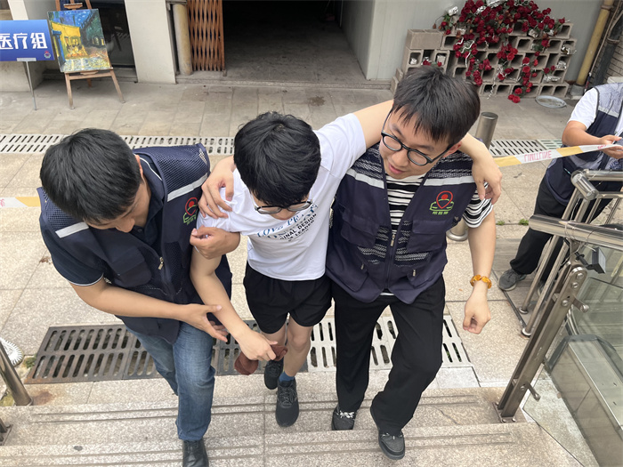活动现场按照“停车场内电动汽车充电时着火,办公区内电线破损短路着火”的预定场景,整体过程从现场通讯组发现事故立即报告,到应急指挥组接到报告后迅速启动应急疏散预案,再到应急抢险组寻找起火点迅速灭火,分工明确、有条不紊,顺利在3分钟内按要求完成疏散工作。