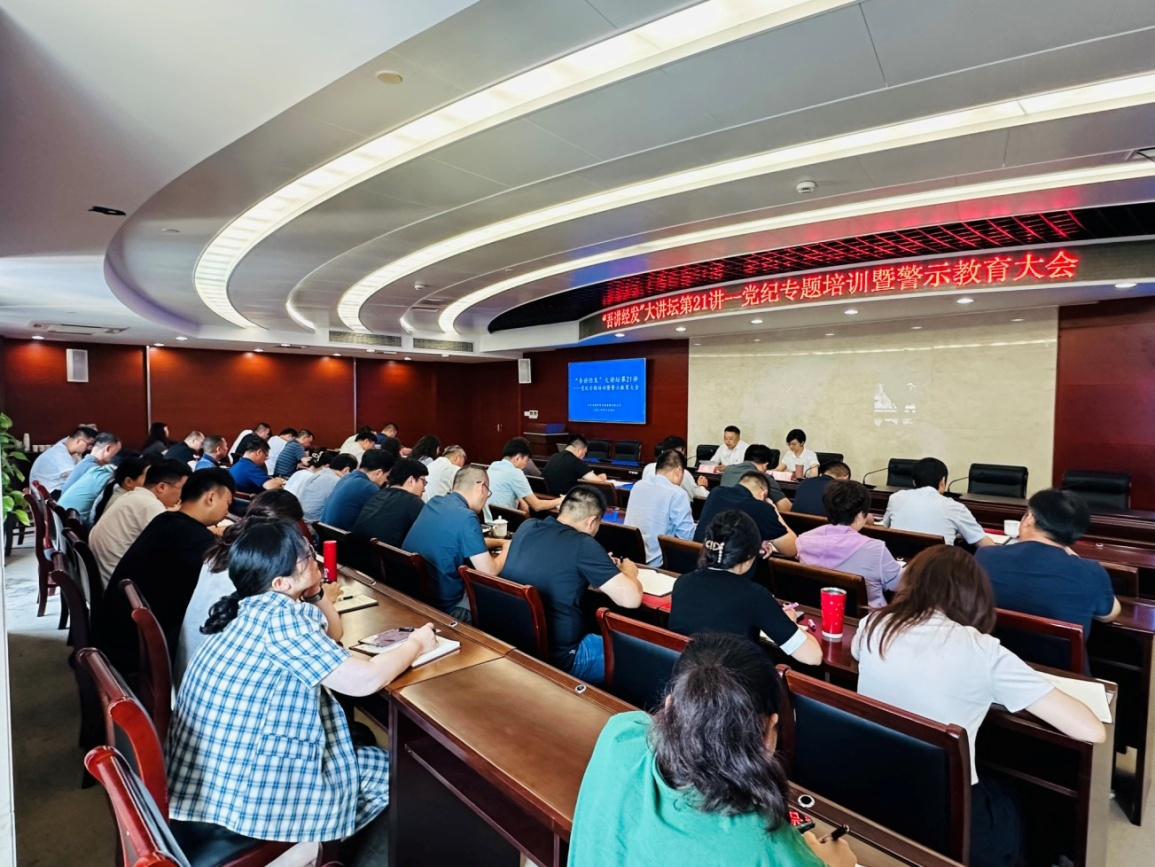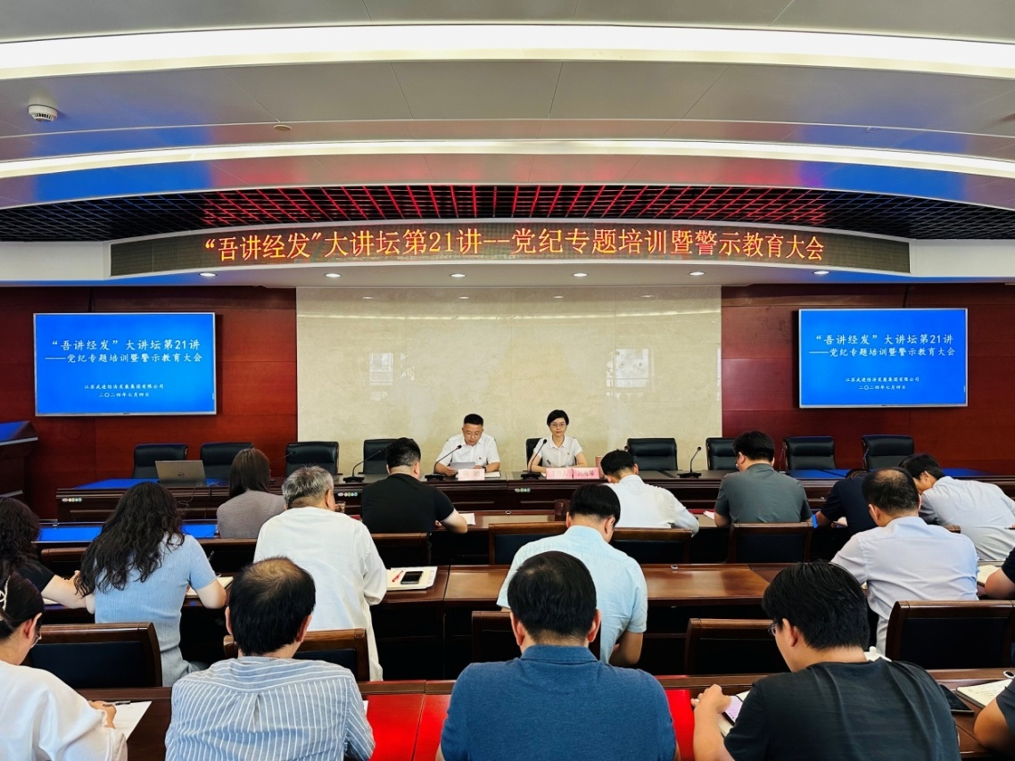根据党纪学习教育工作安排,7月4日上午,经发集团召开“吾讲经发”党纪专题培训暨警示教育大会。深入学习贯彻习近平总书记关于全面加强党的纪律建设的重要论述,以案说德、以案说纪、以案说法、以案说责,教育引导党员干部增强政治定力、纪律定力、道德定力、抵腐定力,永葆忠诚干净担当的政治本色,巩固发展风清气正的良好政治生态。武进区财政局组织人事科科长袁亚莅临指导。集团党委委员、纪委书记刘海琴主持会议。集团党委书记、总经理陈鹏出席会议并讲话。集团领导班子成员、本部全体中层管理人员、各直属党支部支委成员及下属公司高管参加会议。