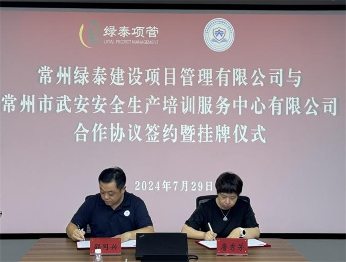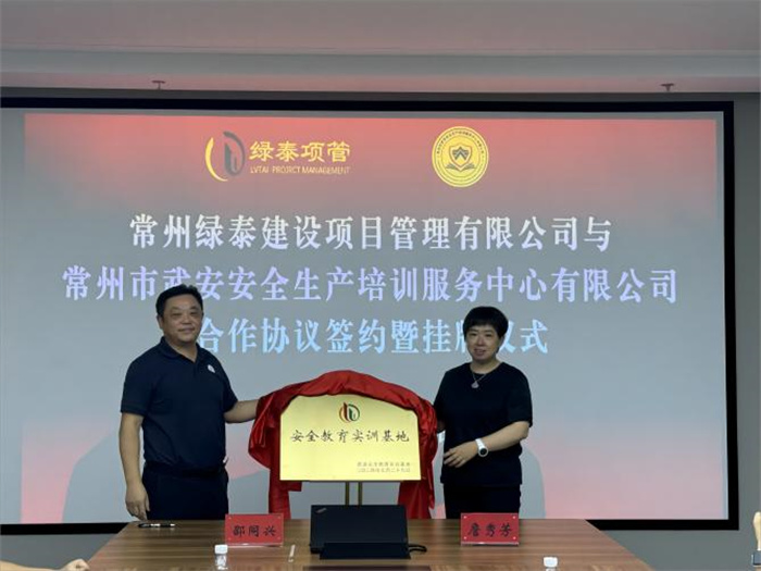 为加深与武安实训基地交流合作,提升绿泰公司在工程管理安全生产技术领域的专业性,7月29日上午,在武安实训基地现场,绿泰公司就工程建设管理领域安全生产技术咨询服务与武安实训基地正式签约,并顺利举行挂牌仪式。绿泰公司党支部书记、总经理詹秀芳,武安公司总经理邵同兴参加活动。