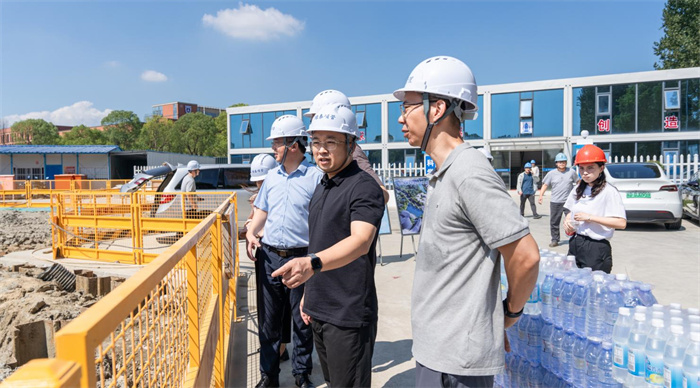 陈鹏一行先后来到青创港二期及江理工东龙路牛塘安置区现场,对坚守一线的工人们表示衷心感谢。党委书记、总经理陈鹏要求,各参建单位要统筹好项目建设和施工安全,保障进度的同时合理安排高温天气作业时间,落实落细防暑降温保护措施,同时叮嘱一线工人做好安全防护、注意劳逸结合。