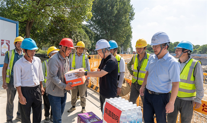 为切实保障夏季安全生产,抓好高温防暑工作,7月31日上午,集团董事长谈胜,党委书记、总经理陈鹏分别带队深入集团在建项目施工现场及部分子公司,为坚守在高温下的劳动者送去关怀和慰问。