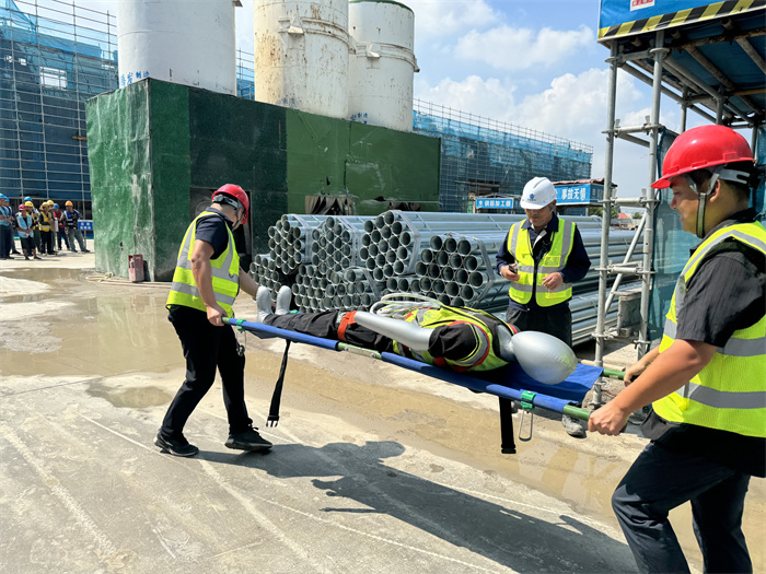 本次演练模拟施工人员因佩戴安全带不当,从脚手架坠落导致突发事故的救援场景。发生坠落事故后,应急救援小组成员反应迅速、分工有序,遵守预案要求积极开展各类有效救援措施,最终成功控制了险情。演练结束后,由武安实训基地专家结合项目现场实际建设情况,针对应急预案和演习中出现的问题进行分析总结,对预案作进一步调整与修改。